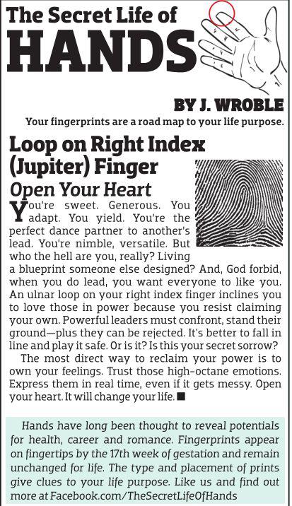 Posted byJerolyn JeanettePosted inArticles, IndexTags:Emotions, Feelings, Finger, Fingerprints, Hand Analysis, Hands, index finger, Jupiter, Leadership, Life Purpose, Loop, Love, Power